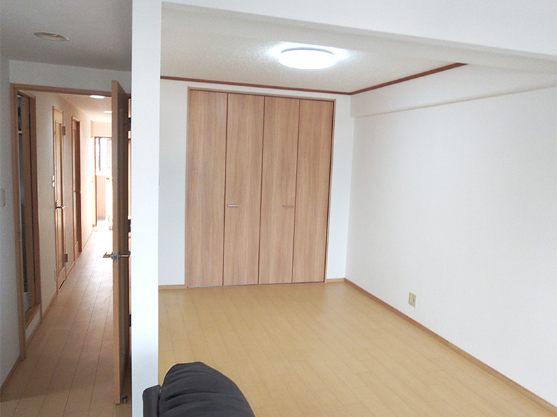 フローリング:NODA カナエルC(色:メープルペール) 天井クロス:リリカラ ベース(品番:LB9505) 壁クロス:リリカラ ベース(品番:LB9516) クローゼット:Panasonic ベリティス(色:イデアオーク) 他:戸襖・壁解体、開口枠造作 |
